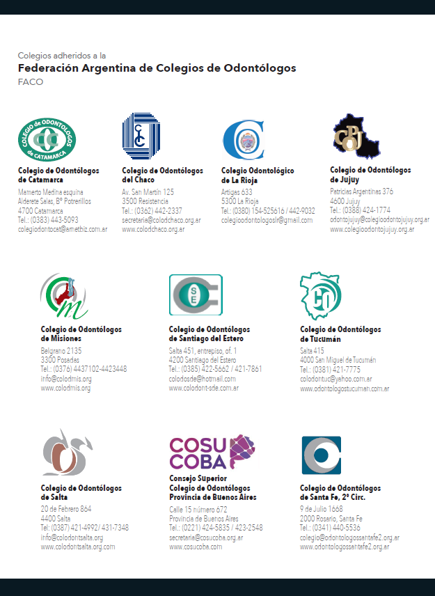 Se emite entonces la Resolución FACO Nº 01/2010, en donde se adhiere a los dictámenes de la Facultad de Ciencias Económicas de la Universidad Nacional del Litoral (UNL) y de la Facultad de Odontología de la Universidad Nacional de Rosario (UNR), en ese momento FACO otorga el aval ético a dicha Estructura de Costos, y “Exhorta a todos los Colegios de Odontólogos del país para que dentro del marco de sus competencias emitan resoluciones a los fines de su observancia y aplicación en las respectivas jurisdicciones.” (Artículo 3 de dicha resolución).